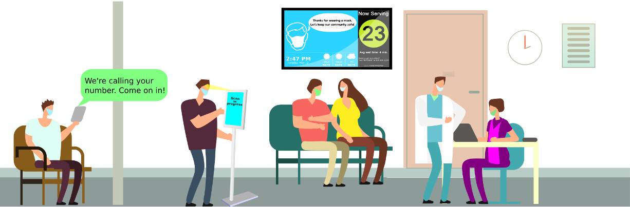 Outpatient clinics, imaging centers, diagnostic labs and other healthcare facilities are all potential hotspots for deadly diseases like CoVID-19. Locations that treat patients with weakened immune systems and assisted living facilities are especially vulnerable. While today's sanitizing and social distancing protocols have significantly improved these facilities' ability to keep infection at bay, they often require putting staff into higher risk situations, like having them conduct entrance pre-screening. WireSpring's solutions for healthcare aim to reduce the load on already-strained healthcare workers with automated pre-screening systems, virtual queuing for enforcing enhanced social distancing rules, and integrated digital signage and messaging for educating and informing staff, visitors and patients about the latest health rules and guidelines.